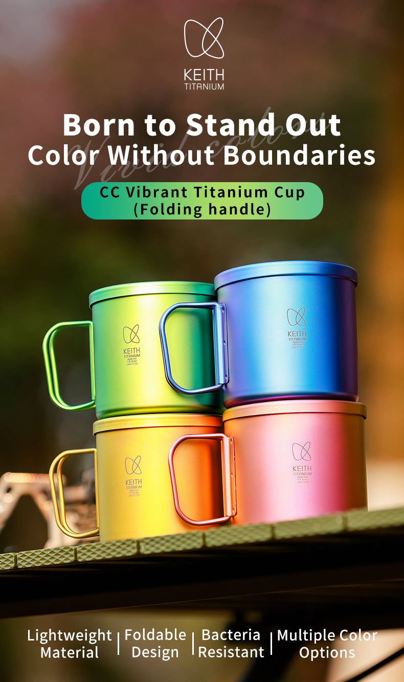 Titanium cups are a must-have for explorers and mountaineers. They are used for drinking water, cooking noodles, etc. They are used very frequently, and cleaning is often the most troublesome thing. Starting from this, KEITH developed the ""rolled edge seamless welding"" technology to create this seamless rolled edge colorful titanium cup, leaving no place for bacteria to hide, making the cleaning almost perfect, safe and healthy.