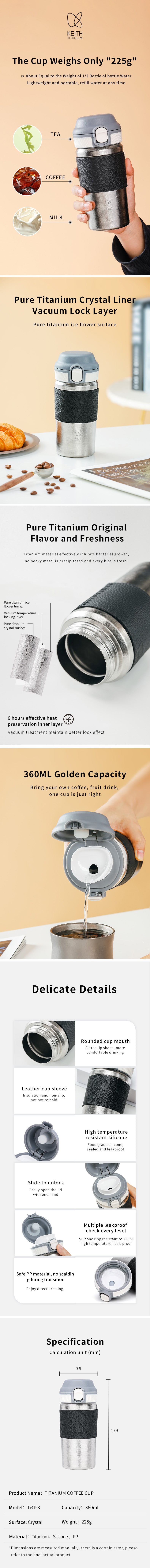 KEITH Titanium Ti3153 Titanium Vacuum Coffee Cup